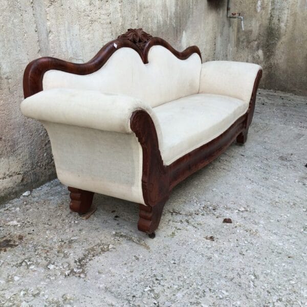 Καναπές Βικτωριανός μαόνι μασίφ με άσπρο ύφασμα.