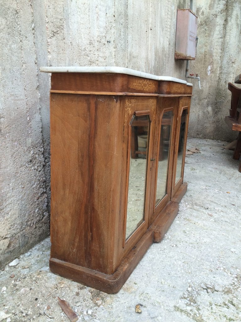 Μπουφές απο αντικες μουδακη με καθρεφτη και μάρμαρο.