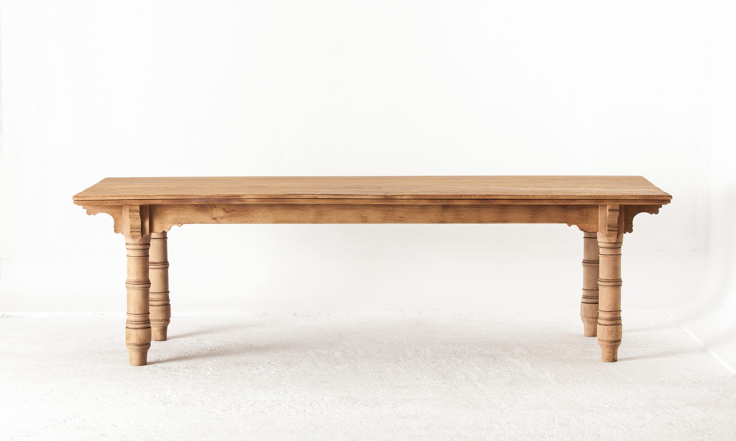 This new table from Greece is an exact replica of a refractory table from 1930’s England. It is made from solid chestnut and has been sandplasted, and it comes in three different sizes. Here, we chose chestnut because it doesn’t crack
