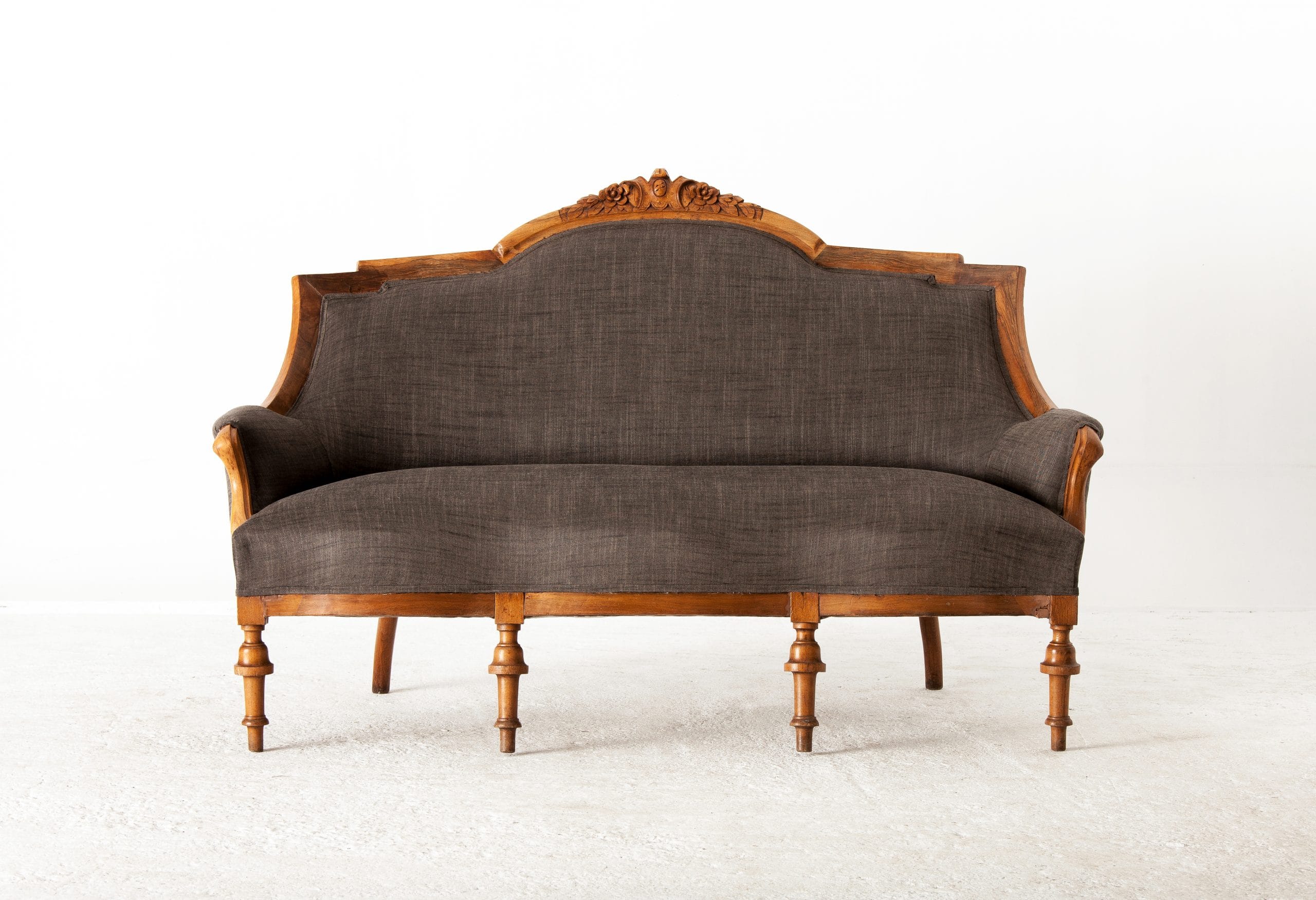 This French sofa was purchased from Ionian island and has been completely restored.The fabricthat was used is from Romo fabrics collection.