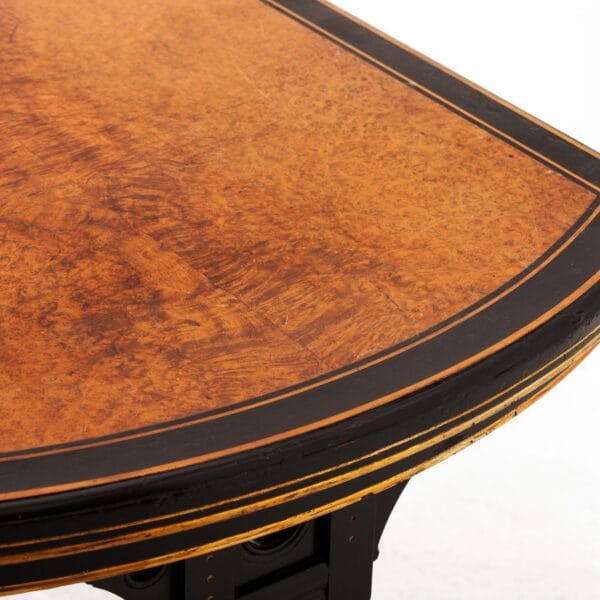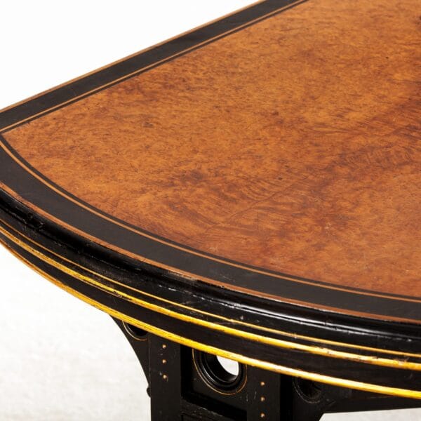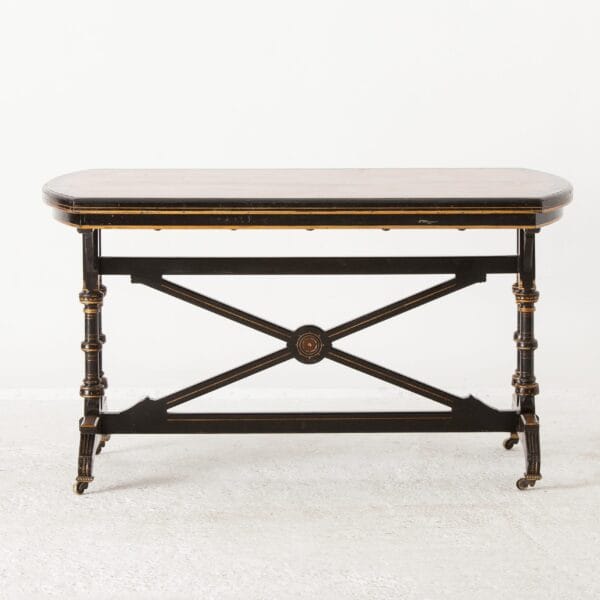 Napoleon III style” is the name that is commonly given to a 19th-century style of Renaissance Revival architecture in France, particularly in Paris. It is a sub-style of Second Empire architecture, a term also used elsewhere in the world for this style. It flourished during the Second French Empire and is characterized by its eclecticism because of the mix of decorative elements from the past. This table was purchased from a woman who was part of the resistance forces to the German occupation in 1940. Because of her efforts, she received a number of gifts, among them this piece, which dates back to 1880.